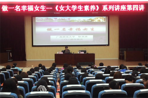 4月,由广西师范大学“气质如兰”优秀女教授团队带来的《女大学生素养》系列讲座,于2014年4月29日下午在beat365雁山校区报告厅圆满落下帷幕。 第一讲:做一名美丽女生 王枬教授以渊博的知识和独特的见解,阐述美丽的内涵,希望当代女大学生积极修养自身人格,提升自身品味。只有修养与智慧并存的女大学生才能让美丽无处不在,散发女性情态之美的魅力。 第二讲:女生的人文素养 余昱教授以“青春”为线索,感受生命的激情。通过《冰雪奇缘》的片段告诉大家:给予别人帮助可以融化“冰冻之心”。当代女大学生应常保持一颗善心,常面带微笑,创造自我,活出人生的意义。 第三讲:女生的语言修养 陈小燕教授用圆润温柔的话语,分析女性语言特点。希望同学们“认知与实践”并重,锤炼“语意美”、“语势美”、“语情美”的口语艺术技巧,做一个兰心蕙质,秀外慧中的当代女大学生。 第四讲:做一名幸福女生 耿涓涓教授以生命为题,从对生命的热情、梦想、爱、信仰等方面细说幸福的含义。鼓励当代女大学生独立自强,拥有梦想,活得精彩,做自己喜欢的事,做自己拿手的事,追求人生的幸福。 《女大学生素养》系列讲座,广受beat365师生的热烈欢迎,一股“女性美”的春风吹遍雁山校园。在今后的学习生活中,beat365女大学生将会更加重视自身修养,提升自身品味,追求梦想,实现自身价值,开启自尊、自立、自信、自强的美丽幸福人生。