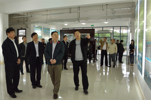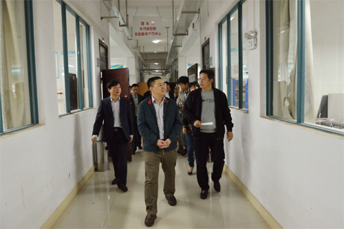 张学洪书记(右一)、解庆林校长(左一)陪同唐琮沅市长参观环境科学与工程学院实验室