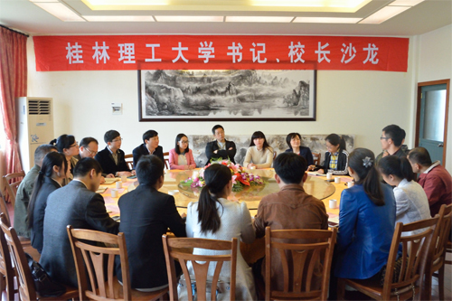 4月22日上午,学校在雁山校区举办实习辅导员及毕业生专场“书记、校长沙龙”活动,学校党委书记张学洪,校长解庆林,党委副书记、纪委书记陈贵英,校长助理陈慕杰与实习辅导员及2014届毕业生代表面对面交流座谈。 沙龙活动上,实习辅导员们畅谈在beat365实习期间的工作和生活情况,对学校提供的实习锻炼机会表示由衷高兴,并结合各自就读学校的情况,就如何做好学校学生教育管理、学风建设、校园文化建设等方面提出了意见和建议。毕业生代表分享了大学四年的收获,回忆了学习生活中的点点滴滴,对学校的教育培养表示感谢,并就进一步加强学校教学、服务与管理工作、更好地服务学生成长成才提出了很好的意见和建议。 张学洪书记、解庆林校长对实习辅导员和毕业生代表提出的意见建议表示衷心感谢,表示将在今后的工作中,围绕大家所提出的意见建议,进一步加强教风、学风和师德师风建设,加强和改进学校的教学、服务和管理工作,发挥好教书育人、服务育人和管理育人的作用,不断提高学校办学水平和办学质量。 党办校办、学工处、后勤处负责人参加了沙龙活动。