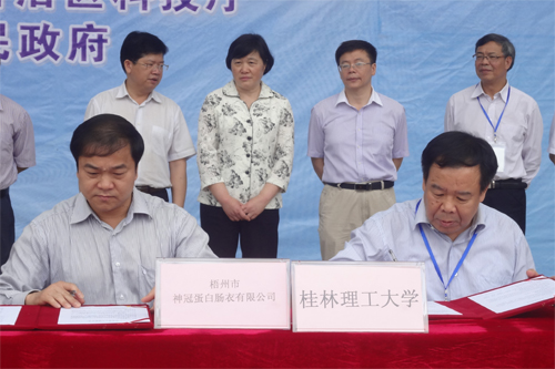 梁福沛副校长代表学校与梧州神冠蛋白肠衣有限公司签订校企合作协议书