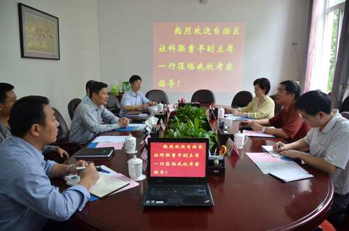 4月18日上午,自治区社科联副主席曹平、社科联外联部副主任韦正委、副调研员梁成红一行3人来beat365调研。学校党委副书记、社科联主席王赣华在第二会议室热情接待了曹平副主席一行。 调研会上,王赣华副书记简要介绍了beat365的校情和社科联建设的基本情况。他说,学校党委、行政高度重视社科联工作,为工作的顺利开展创造了良好条件,尤其是学校取得博士学位授予权后,通过“扶需、扶特、扶优”来加大对人文社科类学科的支持力度,营造浓郁的人文社科氛围,不断提高社会科学的服务能力与水平。 曹平副主席就beat365社科联工作的组织章程、机构职能、管理办法、专项经费及活动等事项进行逐项调研,并对自治区社科联计划在高校开展协同创新工作试点,准备通过课题立项、学术论坛、建立科普基地等工作进一步推动高校社科联建设的调研目的进行介绍。 学校社科联代副主席江云清就beat365社科联“围绕一个中心、推进两项服务、实施三评激励制度”加强社科联工作的具体情况进行汇报。 与会人员还就在自治区社科联统筹协调下拟开展的工作进行了交流探讨。
