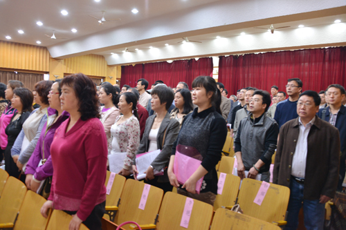 芳菲四月,春雨染绿,百花争艳,这是一年中最富生机活力的时节。4月11日上午9时,215名正式代表和18名列席代表、特邀代表齐聚南校区礼堂,带着师生员工对学校发展的期待与寄托,履行作为代表的神圣职责,开始了一天紧张有序的工作,共商全校教职工最关心的大事。