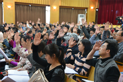 代表们举手表决