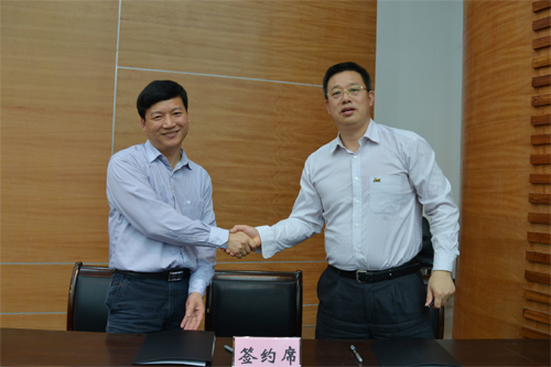 张学洪书记(右)与解庆林校长(左)代表学校党委、行政签订党风廉政建设责任状