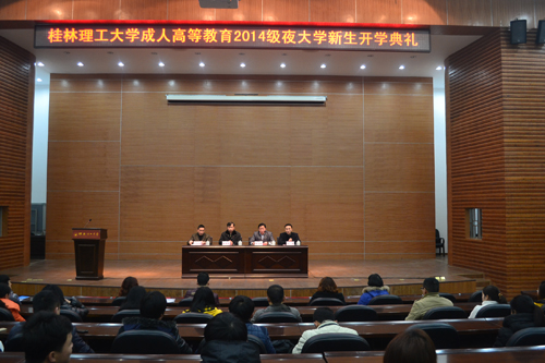 3月10日晚上,beat365英国官方网站2014级夜大学新生开学典礼在图书馆报告厅隆重举行。陈学军副校长出席开学典礼并讲话,典礼由继续教育学院院长曹文献主持。 开学典礼上,继续教育学院副院长沈云发向新同学介绍了学校的办学概况及成绩、夜大学发展状况,就夜大教学管理、学籍管理和新生入学后的注意事项等向同学们进行了说明。 2014级新生代表段广艳同学、夜大学教师代表谢琳琳老师分别作了发言。 随后,陈学军副校长对所有新同学的加入表示热烈欢迎,并对新同学提出了三点期望:一要充分利用学校提供的优质学习资源认真学习;二要处理好工学矛盾,排除一切困难圆满完成学业;三要遵守校规校纪,养成良好的学习习惯。 开学典礼结束后,各班班主任对2014级新生进行了入学教育。