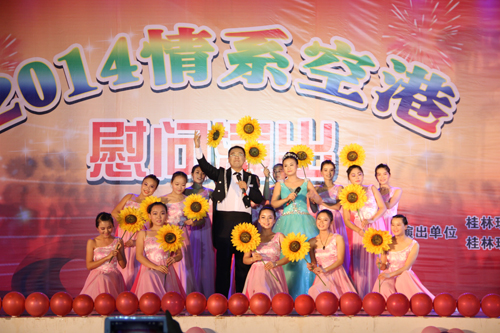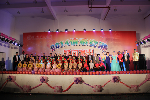 1月7日晚,空港校区体育馆灯光璀璨,学校迎新春“2014情系空港”慰问演出在这里举行。高职学院党政领导班子成员、校工会负责人等一起与空港校区四千余名师生欢聚一堂,观看了精彩的演出。 校长助理、高职学院院长王文在晚会致辞中指出,学校组织到空港校区慰问演出,带来了学校对高职学院师生的关怀和厚爱。他代表学院党委、行政向学校的关怀和厚爱表示衷心的感谢,向前来慰问演出的工作人员表示热烈的欢迎和诚挚的问候。并简要介绍了学院一年来取得的成绩,表达了对学院发展的美好祝愿。 在演出现场,五彩缤纷的灯光、悦耳动听的音乐、丰富多彩的节目、美妙绝伦的表演,汇成了一场视听盛宴。热情洋溢的民族舞蹈《迎亲》展现了浓郁的民族风情,葫芦丝演奏《婚誓》演绎了对爱情的执着坚定;学校留学生表演的现代舞《我的梦》,表达了对中国、对学校的热爱;男生三重唱《海港之夜》以其优美的旋律、深情的抒唱征服了全场观众;情景剧《父亲》诠释了父爱的伟大;独唱《把一切献给党》表明了对党的忠诚和勇于献身的精神;民族舞《走在山水间》展现了大学生良好的精神面貌;葫芦丝、口琴等乐器演奏展现了教职工的多才多艺;《红红的日子》表达了演员们对美好生活的向往;最后,男女对唱《阳光路上》表达了对和谐社会的美好憧憬。晚会在热烈的掌声中圆满结束。 晚会还通过微博平台让观众参与互动,表达了师生喜悦的心情和对新的一年的美好祝福。