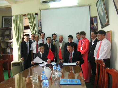 王赣华副书记(前排左)与平阳大学副校长(前排右)签订教育合作备忘录