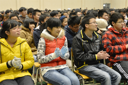 学生在认真聆听报告