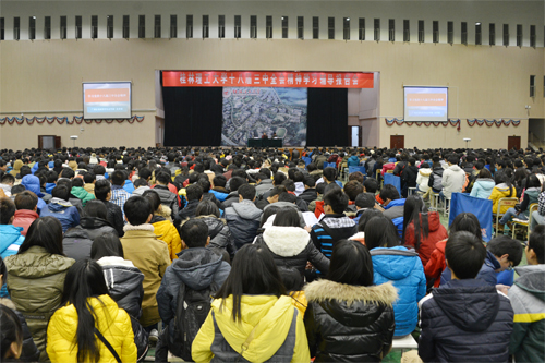 在家校领导(前排)聆听报告会