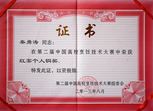 第二届中国高校烹饪技术大赛红案个人铜奖