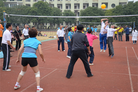 11月8日,学校首届离退休教职工运动会在南校区运动场举行。学校党委副书记、工会主席王赣华出席开幕式并致辞。财务处、资产管理处、保卫处、校医院、附小等部门负责人应邀出席。 本届运动会根据离退休教职工居住区划分为东城区、南校区、屏风一区、屏风二区四个区组队参加,共设有气排球、乒乓球、门球等十个比赛项目,比赛不设个人成绩,只设团体奖、团体总分奖、组织奖,以突出“健康、和谐、文明、愉悦”的运动主题。比赛中,老同志们忘却了年龄和比赛结果,现场一片欢声笑语,其乐融融。运动会不仅促进了老同志间的相互交流,增进了友谊,也丰富了老同志的文化娱乐生活。 为了保证运动会安全、有序的进行,本届运动会还组织了由校医院、保卫处、大学生组成的志愿者服务队伍。