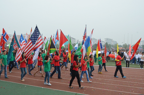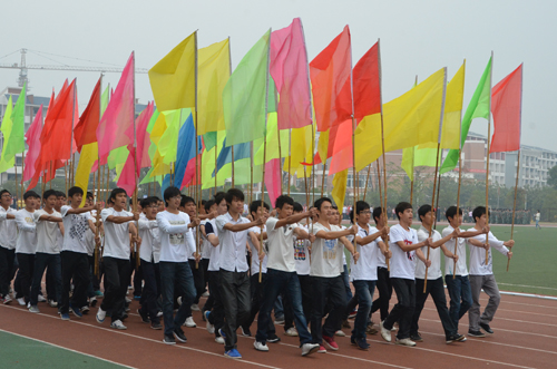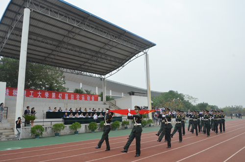 丹桂飘香,秋高气爽,深秋带来丝丝凉意,却阻挡不住那如火的热情。11月8日上午8点30分,beat365第42届田径运动会在雁山校区运动场隆重开幕。学校校长解庆林,校党委副书记、纪委书记赵君,副校长陈学军以及各学院和相关职能部门负责人出席开幕式并在主席台就坐。开幕式由副校长陈学军主持。 8点30分,伴随着《运动员进行曲》的响起,国旗班护送着鲜艳的国旗、校运会会旗进入会场,方块队举着各色彩旗紧随其后,开幕式拉开了帷幕。随后各学院代表组成的表演方块队依次入场,整齐划一的步伐、响亮的口号、飒爽的英姿,啦啦操表演、拳舞表演、现场喷绘……通过各种创意方式向全校师生展示了各自学院的特色与风采,充分展现当代大学生的青春活力。学院方块队入场完毕后,在庄严的国歌声中,五星红旗冉冉升起,飘扬在蔚蓝晴空,显得格外耀眼。 校党委副书记、纪委书记赵君致运动会开幕辞,首先他代表学校党委和行政向运动会的胜利举行以及为此付出辛勤劳动的老师同学表示最热烈的祝贺和最衷心的感谢。他还指出,beat365坚持“健康第一,全面发展”的指导思想,多年来在体育事业方面取得了傲人骄绩。他希望广大学生能够坚持重在参与、重在学习、重在提高的原则,进一步弘扬“艰苦创业、敬业奉献、团结协作、开拓创新”的桂工精神,敢拼,敢跑、敢闯。希望全体裁判员遵守准则、秉公裁判,公平公正,优化秩序;希望全体观众文明观看、遵守秩序;希望各单位各部门认真做好服务保障工作,确保运动会顺利进行。最后他预祝本次运动会圆满成功。 运动员和裁判代表分别宣誓。开幕式上还进行了团体操表演,将气氛推向高潮。 最后,解庆林校长宣布第42届田径运动会开幕,全场响起热烈掌声。759名运动员将投入到各项紧张的赛事中进行角逐,为期两天的校运会正式开始。