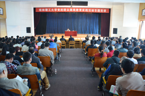 目前,学校党的群众路线教育实践活动已进入“查摆问题、开展批评”环节,为了全面对照检查,深入剖析,查找“四风”,推动教育实践活动深入开展,10月23日上午,学校在屏风校区南校区礼堂举办了党的群众路线教育实践活动专题党课。自治区党的群众路线教育实践活动第14督导组组长、自治区党校原常务副校长、广西行政学院原院长张敦教授作了题为“作风建设与提高党的执政能力”专题党课报告。全体校领导、中层领导干部、党委职能部门干部、各教工党支部书记及部分学生党支部支委参加党课学习。专题党课由学校党委书记张学洪主持。 张敦组长从党的执政能力取决于多种因素、群众路线是提高党的执政能力的法宝、切实转变作风才能坚持党的群众路线等三个方面阐述了开展党的群众路线教育实践活动的重要意义、原则和方法。张组长结合苏东解体等多个案例,解读了党的执政能力主要取决于党的先进性、合法性、规律性等因素。通过列举史例,阐明我党之所以能在抗日战争、解放战争中取得胜利,是因为党充分调动人民群众的积极性,赢得人民的大力支持。结合国内外、区内外的实例,张敦组长指出调动人民群众的积极性必须依要融入群众、尊重群众、相信群众、服务群众,从而提高党的执政能力。 张敦组长指出,党的群众路线,关系到党和国家事业的兴衰成败,党员同志的作风建设尤为重要,整治“四风”,推进党的作风建设,必须从根本上抓起,一是要变观念;二是要增能力;三是要转方式;四是要建制度。张敦组长强调,共产党员尤其是党员领导干部一定要严守为民务实清廉的信条。为民是宗旨,要牢牢把握住幸福红线、发展蓝线、生存底线三条线;务实是风格,要言必行、行必果,要讲科学、求实效;清廉是修为,掌握公权的人,必须坚守精神家园,才能时时清醒,一生快乐。 张学洪书记在总结讲话中指出,张敦组长的报告内容丰富,从专家的视角和理论的高度将理论与实践相结合、历史和现实相结合,分析透彻,发人深省,对全校党员及领导干部今后如何更好地践行党的群众路线教育实践活动有着深刻的启发意义和很好的指导作用。希望课后大家继续深入学习,把讲话精神深刻领会并贯彻到各项工作中去,切实将学校党的群众路线教育实践活动不断推向深入。