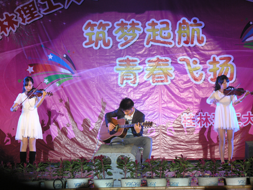 秋风怡人,桂花飘香。10月19日晚学校南校区礼堂欢歌笑语,喜气洋洋,学校党委副书记、纪委书记赵君与来自各二级学院的2013级研究生欢聚一堂,共同观看“筑梦起航,青春飞扬”研究生迎新晚会。学校党办校办、党委宣传部、学工部(处)、校团委、研究生院以及各二级学院主管研究生教育相关负责人参加晚会。 赵君副书记致热情洋溢的晚会祝词,对来自祖国各地到桂工求学深造的各位研究生表示热烈欢迎。赵副书记简要回顾了beat365学位与研究生教育发展历程,介绍了beat365研究生培养和研究生学术论坛、学术文化节等开展情况,希望研究生珍惜时光,志存高远,严谨治学,奋发成才,为实现中国梦和中华民族伟大复兴做出贡献。 晚会共分筑梦远方、迎风起航、青春飞扬三个篇章,节目内容精彩纷呈。来自地球科学学院、旅游学院、管理学院的笛子、古筝、古琴独奏展现了研究生新生的精湛才艺;理学院研究生的诗朗诵《因你而精彩》诉说着研究生学子对祖国的深情;材料科学与工程学院、化学与生物工程学院、环境学院研究生分别带来的小品、三句半和情景喜剧展示了研究生的诙谐幽默;机械与控制工程学院研究生的合唱及来自测绘地理信息学院、土建学院等研究生的歌曲串烧唱出了对研究生生活的美好向往和年轻人的时代朝气;马克思主义学院研究生独出心裁的民族舞《天竺少女》表演、外国语学院恬静的外语歌曲演唱赢得了阵阵掌声。此外国际教育学院留学生、广西师范大学研究生、桂林医学院研究生也带来了精彩节目为晚会助兴。 晚会最后进行了抽奖环节,赵君副书记和各位领导嘉宾为研究生新生送上了美好祝福。