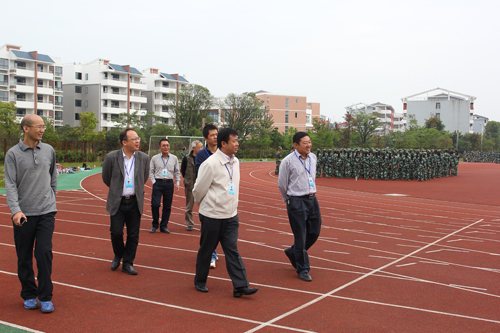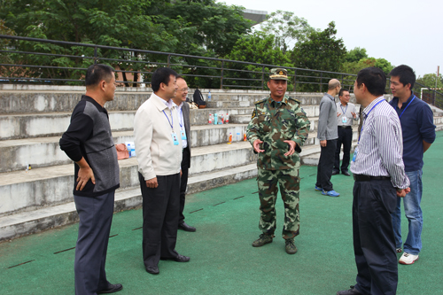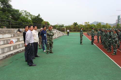 酷暑已过,秋意渐浓,2013级新生军训正在如火如荼地进行着。9月27日上午,赵君副书记、刘宝臣副校长在校办、学工部(处)、校团委、武装部、基建处负责人的陪同下看望军训教官与新生,检查军训情况,与教官和新生交流,并对进一步做好军训各项工作作出指示。 在检查工作中,桂林市武警支队和学校武装部负责同志分别向赵君副书记、刘宝臣副校长介绍了军训各项工作的开展情况。随后,赵君副书记、刘宝臣副校长观看了男子擒敌拳表演和女子队列操表演。看到朝气蓬勃、英姿飒爽的同学们的精神面貌,赵副书记、刘副校长频频点头,给与了赞许的掌声。校领导对承训教官的辛勤付出表示感谢,对军训所取得的成绩给予了充分的肯定。