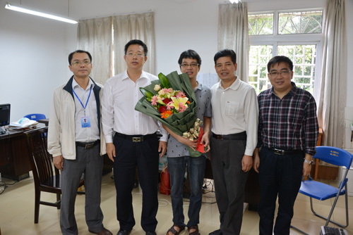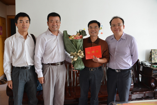 刘宝臣副校长(左三)慰问2013年国家自然科学基金获得者金凌志