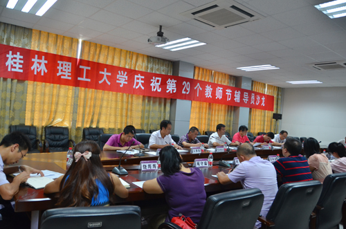 9月9日下午,学校在雁山校区科技综合楼二楼会议室举办庆祝第29个教师节辅导员沙龙。学校党委副书记、纪委书记赵君,副校长陈学军以及各有关职能部门领导与辅导员代表们参加了沙龙活动。 沙龙活动上,各位辅导员代表们纷纷发言,感谢学校领导对辅导员工作上的指导和生活上的关心,对学生工作的相关问题提出了自己的建议,并表示今后将继续发扬桂工辅导员工作的优良传统,吃苦耐劳、拼搏向上,为建设高水平的理工大学奉献自己的力量。 党委副书记、纪委书记赵君代表学校党委、行政对辅导员老师们致以节日的问候,充分肯定了辅导员们的工作和成绩,并与参会辅导员们分享了他个人的辅导员经历,为他们提供了宝贵的经验。陈学军副校长结合自己的经验,建议辅导员学会五种技能——学会做人、学会相处、学会相比、学会理解、学会表现,在业务上和层次上不断提高。 赵君副书记对座谈会做总结时强调:要充分认识到辅导员的岗位职责——辅导员是学生核心价值体系的塑造者,是校园工作的稳定器、推进器,是学校和学生联系的桥梁;要明确辅导员的工作责任——立德树人;要重视自身的素质提升——在育人中成长,在育人中进步。