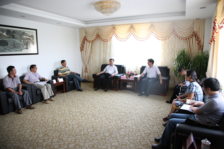 解庆林校长(右)一行与贺州学院吴郭泉院长(左)等领导座谈