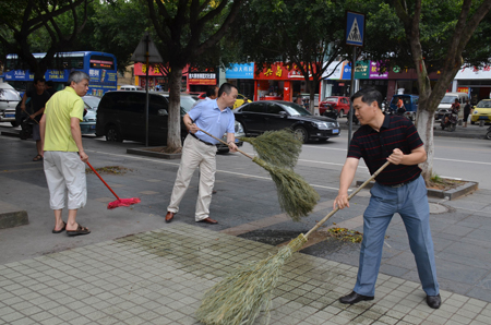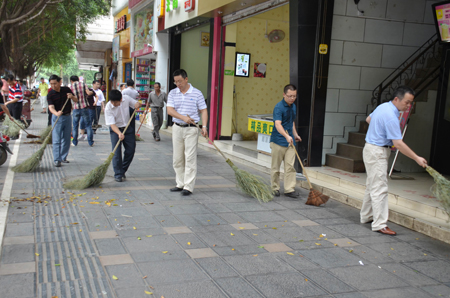 校领导走上街头带队义务清扫 积极参与美丽桂林创建