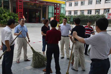 (二)校领导走上街头带队义务清扫,积极参与美丽桂林创建