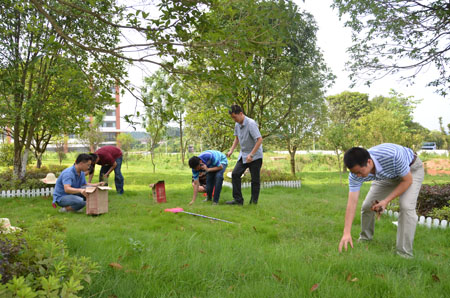 为切实推进学校“美丽广西·清洁乡村·美丽校园”活动的全面展开,7月5日下午,肖岳峰副校长、张鹏调研员分别带领党办(校办)、纪委、组织部、宣传部、保卫处、学工部(处)、团委、资产管理处、后勤集团、社区办、附小等相关部门负责人,对屏风校区、雁山校区校园公共区域、教职工住宅区环境卫生清洁整治情况进行了检查。 检查组一行分别深入教学楼、社区、地下停车场及各学院各部门卫生责任区等了解卫生清理情况、查看卫生死角、提出整改措施、督促相关负责单位尽快落实整改。在对校内整治难的重点区域,校领导和检查组成员对相关人员进行了劝导和教育,并组织后勤集团相关工作人员对重点区域的卫生进行了清理。校领导以身作则带领检查组成员搬运杂物、清扫垃圾、疏通水沟、清理卫生死角等,虽然天气炎热,但大家干劲十足,经过几个小时清理,各公共区域再现整洁容颜。 此次,校园环境卫生清洁整治检查,是学校扎实开展“美丽广西·清洁乡村·美丽校园”的具体实践,是学校深入开展“美丽广西·清洁乡村·美丽校园”活动的一项具体内容。校领导表示在接下来的工作中,要将校园环境卫生清洁工作常态化,同时不定期对校园环境卫生清洁进行检查和整治,希望各单位和部门高度重视,尽快行动起来,为建设清洁、美丽、和谐的校园贡献自己的一份力量!