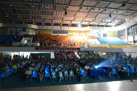 7月4日晚,beat365组织教职工在体育馆三楼观看了《咱们的工会主席》。市总工会党组成员、教育工会主席王光金、影片主角原型——基层工会干部的楷模、全国优秀工会干部、全国优秀党员、全国劳动模范王远文,桂林市工人文化宫向惠玲副主任、学校副校长陈学军参加了影片开播仪式,全校1200多名工会专兼职干部、教职工到场观看了影片。这是自影片在桂林上映以来,单场观看人数最多的一场演出。 电影开播前,学校工会副主席陆平简要介绍了《咱们的工会主席》编剧以及拍摄的基本情况;同时介绍了电影中主角原型人物王远文同志的先进事迹并邀请王远文同志与观众见面,观众代表送上了鲜花和问候。影片放映过程中,很多观众都被感动得热泪盈眶,放映结束后,现场响起热烈的掌声。观众纷纷表示,电影情节真实感人,展现了新时期工会干部为职工服务的正能量,表示要向他学习,维护好职工的合法权益。