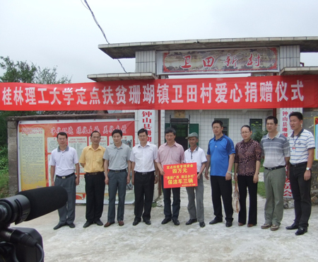 5月30日上午,在贺州市委组织部副部长黎江,钟山县委常委、组织部部长杨春萍等领导的陪同下,beat365党委书记张学洪、校长解庆林、党委副书记王赣华等校领导到钟山县看望了贫困村党组织第一书记,并就新农村建设工作进行了调研。党委组织部和党委办公室负责人随行看望和调研。 张学洪书记、解庆林校长先后到同古镇同古村、珊瑚镇卫田村、公安镇里太村了解了“第一书记”驻村一年多来工作开展的情况以及存在的困难。张书记对“第一书记”的工作成效给予了充分肯定,同时要求“第一书记”再接再厉,在学校和政府的大力支持下,圆满完成自治区党委下达的帮扶任务,为新农村建设做出更大贡献。校长解庆林代表学校向每个村各捐赠新农村建设扶贫资助款4万元和“美丽广西、清洁乡村”活动所需的专业环保车3辆。