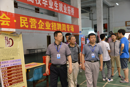 张学洪书记(前排左一)、赵君副书记(前排右一)莅临招聘会现场指导工作