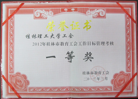 4月27日,桂林总工会教育工会召开四届一次全会,通报表彰了教育工会系统2012年度先进单位和个人。beat365工会荣获2012年桂林市教育工会工作目标管理考核一等奖、工会女教职工委员会荣获2012年桂林市教育工会工作目标管理考核先进集体。 近年来,beat365工会、女教职工委员会认真贯彻落实学校党委和行政的工作部署,在市总工会教育工会的指导下,突出“巩固提高,有所创新,有所发展”的总体目标,紧紧围绕学校中心工作任务,抓重点,攻难点,确保了年初制定的工作目标任务的圆满完成,工会工作和女职工委员会工作均取得了显著成效。
