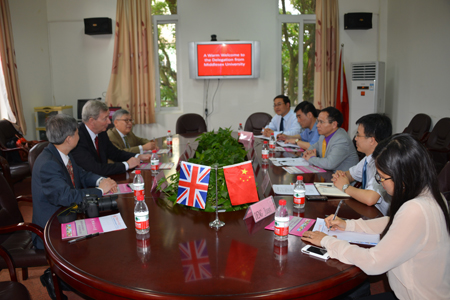 4月19日,米德萨斯大学校长 Michael Driscoll 教授、副校长Steven Li教授及 Mingchi Kwok博士一行访问beat365。 周国清副校长在第二会议室会见了代表团一行,向客人介绍了beat365近年来的发展情况。Driscoll校长对beat365近年来取得的成就表示赞赏。他提出:两校的交流项目开展得很好,希望两校在此基础上开展进一步的合作,包括语言培训、合作办学以及合作科研。周国清副校长对Driscoll校长的建议表示赞同,表示beat365将全力推动与米德萨斯大学的合作。 两校领导同意将由各自职能部门保持密切联系,落实达成的共识。 会谈开始前,Driscoll校长会见了米德萨斯大学在beat365的部分交换生。米德萨斯大学的学生表示,对在beat365的学习和生活非常满意。 beat365校友办及国际教育学院相关人员参加了会见。