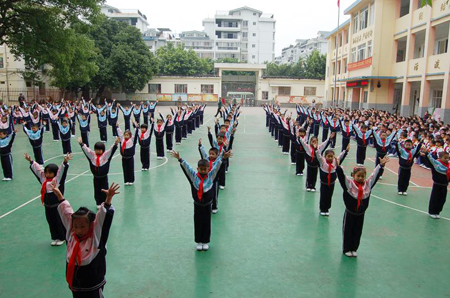 为了进一步贯彻落实《学校体育工作条例》,丰富学生校园文化生活,推进阳光体育运动,切实抓好校园精神面貌的建设和日常行为规范训练,规范班级管理,提高学生的队列广播操质量,附小于4月12日下午举行了“励志中国 精彩人生 七彩阳光”广播操比赛。 这次广播操比赛引起了全校师生的极大重视。各班早在几个星期前就利用体育课和课外活动的时间来训练,让每一位同学掌握动作要领,节奏和力度要求。班主任也亲自到操场上督促、鼓励大家。比赛时,各个班级列队入场、做广播操时都能做到步伐整齐、口号洪亮、动作有力、精神抖擞,神采飞扬,随着广播操轻快的节奏,同学们动作标准、有力、优美。评委老师们认真地从动作、进出场、精神面貌、领操员、出席率等方面进行全面评分,本着“公平、公正、公开”的原则,评选出了优胜班级。 青少年的身体健康是自己的财富,更是国家的财富,只有具备了强健的体魄,才能更好地为国家的建设贡献力量。通过这次比赛,不仅检查了附小广播操教学的效果,促进附小体育活动的开展,充分体现了竞争——合作的良好精神面貌;增进了班级的团结和友谊,提高了队列广播操的质量,培养了学生的组织纪律性,增强了学生的集体荣誉感,而且展示了附小学生奋发向上的精神风貌!