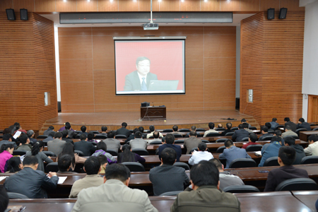 3月30日下午,beat365在图书馆报告厅举行处级领导干部学习贯彻党的十八大精神专题培训班视频学习会议。全校处级领导干部培训班学员参加了会议。 大家集中观看了中国社会科学院副院长李捷教授主讲的《深入学习贯彻十八大精神》专题录像。此次视频学习会议为beat365处级领导干部学习贯彻党的十八大精神专题培训班视频学习会议的其中一项环节。