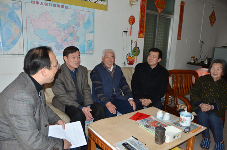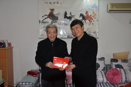 1月18日至2月2日,在传统的农历癸巳年春节到来前夕,学校党委书记张学洪,校长解庆林,党委副书记、纪委书记赵君,副书记王赣华,副校长肖岳峰、陈学军、吴志强、周国清、陈贵英,正厅级调研员张鹏等在党(校)办、人事处、组织部、宣传部、纪委、工会、学工处、离退处、财务处、教务处、招就处等职能部门负责人的陪同下,分别到老领导、离退休干部及困难党员、困难职工家中进行慰问,把学校的关怀和温暖送到他们的家中。同时,副校长刘宝臣对高职学院部分离退休老同志进行慰问。 每到一处,校领导们都关切地询问老同志们的身体状况、生活起居情况和困难党员、职工的家庭经济状况,并为他们送去了慰问金和节日的祝福,代表学校党委、行政感谢他们为学校发展做出的贡献和对学校建设发展的关心与支持,祝愿他们新春快乐、身体健康、阖家幸福、万事如意! 老同志们在听完校领导的介绍后对学校近年来所取得的成就深感欣慰,并衷心祝愿学校发展蒸蒸日上,在新的一年里取得更好更快的发展。