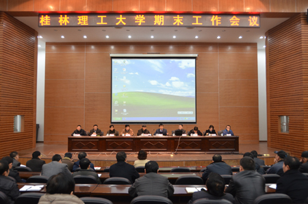 1月22日上午,学校在图书馆报告厅召开期末工作会议,安排部署期末工作。学校校长解庆林,党委副书记、纪委书记赵君,党委副书记王赣华,副校长肖岳峰、陈学军、吴志强、周国清、陈贵英、刘宝臣,校长助理、人事处处长华桂林出席会议并在主席台就座。全体中层干部参加了会议。会议由学校党委副书记王赣华主持。 会上,校长助理、人事处处长华桂林首先就2012年年终绩效奖的发放情况进行了说明。随后,赵君副书记传达了习近平同志有关厉行勤俭节约反对铺张浪费重要批示的文件精神。肖岳峰副校长就寒假期间维护学校安全稳定工作进行了部署。他要求各单位、各部门要高度重视寒假期间学校安全稳定工作,切实加强假期校园的安全管理。肖岳峰副校长还就空港校区教职工住宅建设进展情况进行了详细说明。 学校校长、党委副书记解庆林在会上代表学校党委、行政回顾了学校2012年取得的主要成绩,对学校广大教职员工一年来为学校的建设发展所付出的辛勤劳动和无私奉献表示衷心感谢。他希望全体教职员工切实做好放假前的相关工作,并就假期工作进行了安排部署。一是相关单位要认真做好博士点检查验收工作;二是要组织好各类项目的申报工作;三是要做好雁山校区、空港校区的教职工住宅认购工作;四是要进一步加强人才队伍建设,做好人才引进工作;五是要做好毕业生就业工作。最后,解庆林校长在会上代表学校党委、行政提前祝全校教职员工春节愉快、身体健康、全家幸福、心想事成!