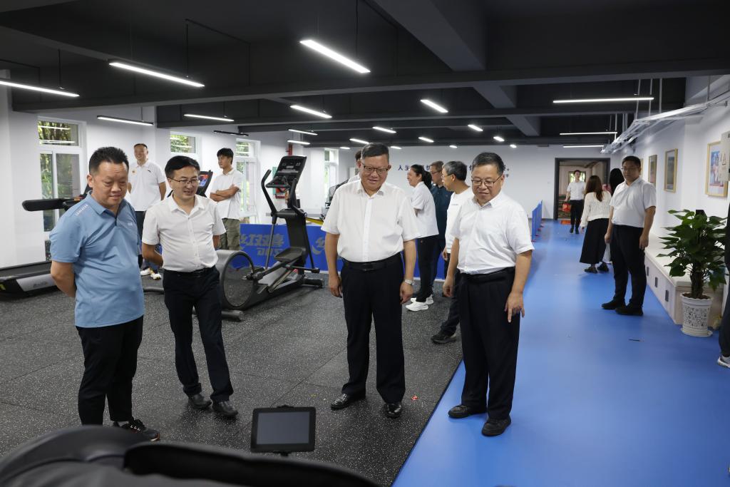 揭牌仪式上,吴志强介绍了雁山校区教职工活动中心的基本情况,邓军、王磊、黎贞崇、曾繁荣共同为雁山校区教职工活动中心揭牌。随后校领导一行还参观了雁山校区教职工活动中心。