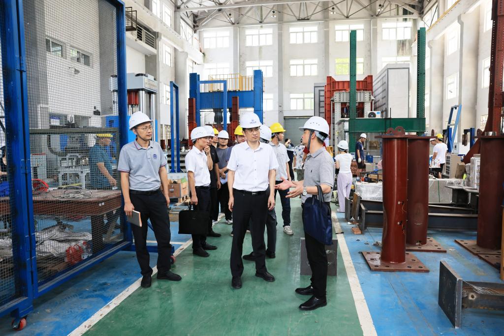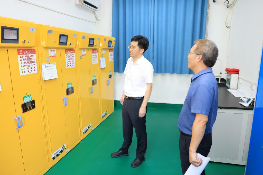 王磊一行先后来到材料科学与工程学院实验室及危化品仓库、土木工程学院结构大厅等重点场所,对实验室用水用电安全、仪器设备使用、危化品全流程管理、机电安全、消防安全等进行全面检查,排查安全隐患,并就存在的薄弱环节和风险隐患提出有针对性的整改意见。