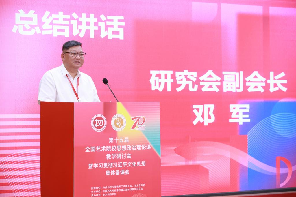 邓军在发言中强调,本次会议时间节点好,主题鲜明、意义重大,内容丰富、形式多样,质量高、收获大。会议的圆满举办,对深入学习领会习近平总书记关于思政课建设重要指示精神,深入学习贯彻新时代思政课建设推进会会议精神,交流各兄弟高校思政课建设内涵式发展的成功经验,推进艺术教育与思政教育协同育人,科学把握艺术院校思政课建设面临的新形势新任务,奋力推动新时代艺术院校思想政治教育展现新气象新作为具有重大意义。