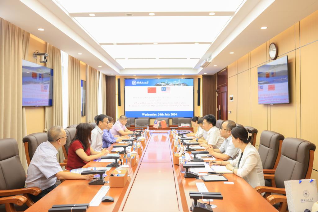 7月24日,马来西亚冬姑阿都拉曼管理与工艺大学校长李仕伟一行来访beat365,学校党委常委、副校长王磊在屏风校区第一会议室会见了来访客人。
