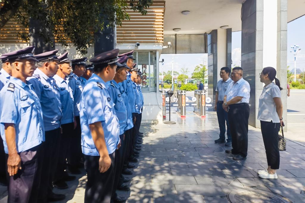 在雁山校区东门保卫岗亭,邓军向坚守一线的保卫人员表示慰问,对大家不惧高温酷暑、守护校园安全的辛勤付出表示感谢,嘱咐大家要注意防暑降温、劳逸结合,有序完成暑期值班任务和服务保障工作。