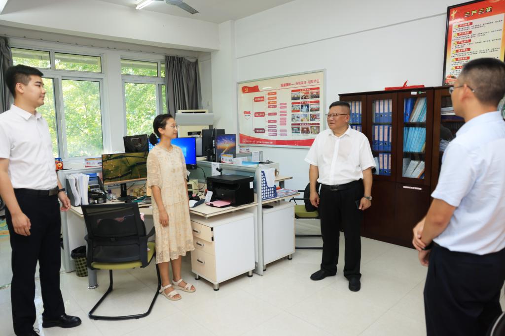 在学工处值班室,邓军慰问了学工一线值班辅导员,并听取了学工处负责人关于迎新工作准备情况的汇报,他对大家暑假期间取得的工作成效给予充分肯定并致以诚挚问候。他强调,要进一步提高政治站位,强化做好学生工作的使命感责任感,始终坚持以学生为中心的价值取向,坚持立德树人根本任务,以高度自觉的大局意识,切实把学生管理服务工作做得更好、更实、更有效力。