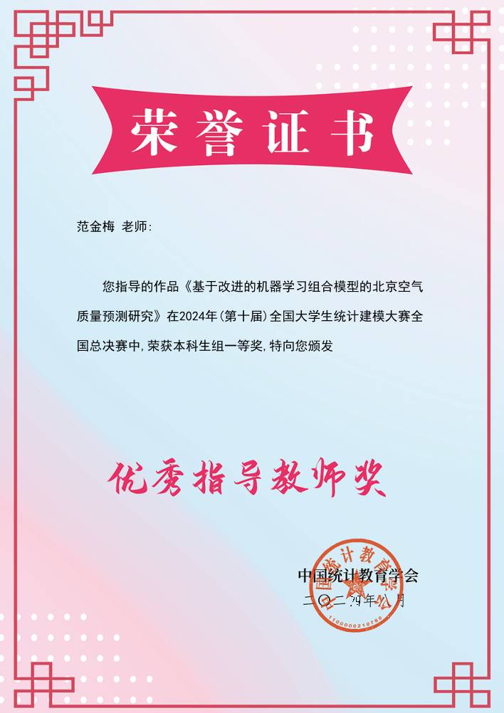 近日,2024年(第十届)全国大学生统计建模大赛决赛答辩在陕西西安落幕。经过校赛、省赛、国赛通讯评审、现场会议评审和现场答辩,beat365荣获国家一等奖1项、国家三等奖1项,以及广西赛区一等奖4项、二等奖11 项、三等奖8项。其中,数学与统计学院刘纯铜、韩晴、何小梅同学的参赛项目《基于改进的机器学习组合模型的北京空气质量预测研究》在本科生组总决赛中荣获全国一等奖。