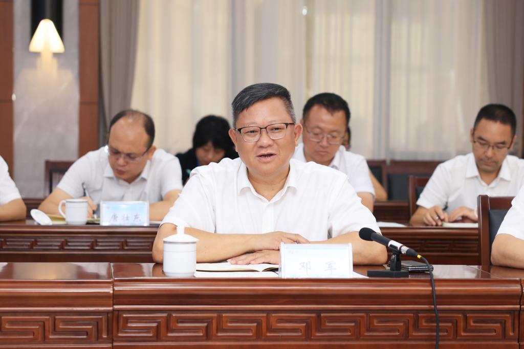 广西大学党委书记李国忠对邓军一行的到来表示诚挚欢迎,并简要介绍了广西大学在人才引育工作、服务地方经济发展等方面的情况。他表示,两校在人才培养、资源拓展、科学研究、项目申报等方面具有广泛的合作空间,希望双方以此次交流为契机,进一步完善合作机制,突出人才核心,聚焦科技创新,加强沟通协作,加强校园文化交流,携手共进、相互赋能,推动两校内涵式建设和地方经济社会发展。