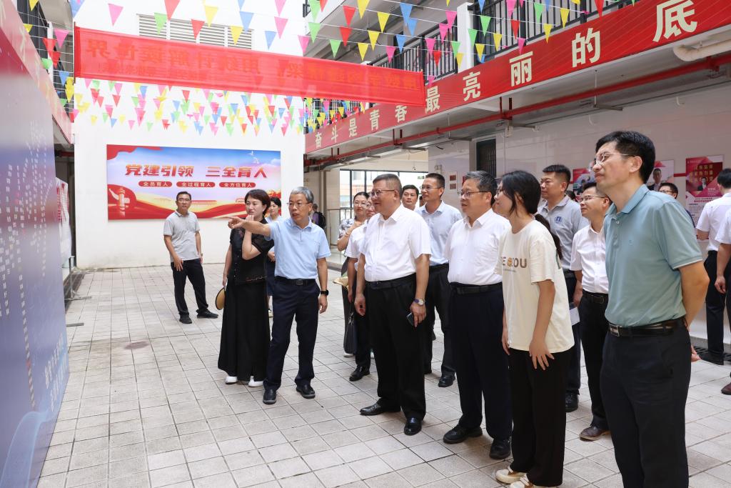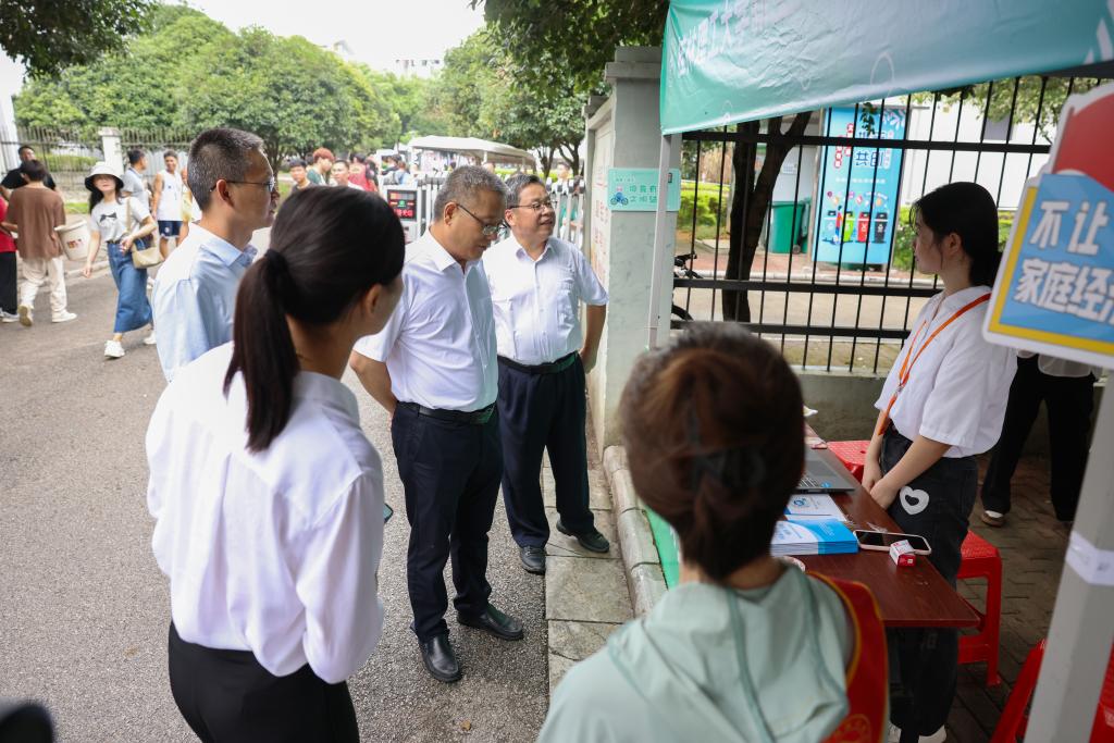 周国清(右二)带队在屏风校区大门口现场检查指导研究生新生入学报到工作