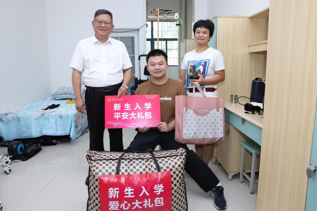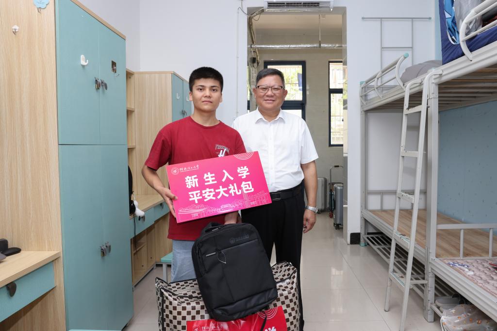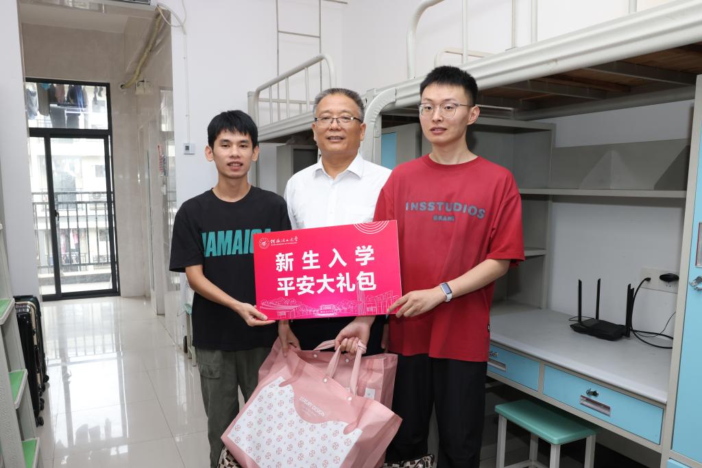 检查期间,校领导深入宿舍慰问新生代表,细心询问新生们对于新环境的适应情况、对未来学习生活的规划与憧憬,并送上平安大礼包、爱心大礼包和学习用品。校领导鼓励新生们要珍惜大学时光,养成良好生活习惯,保持乐观豁达的心态,勇于探索未知,不断挑战自我,在桂工就读期间规划好自己的学习生活,收获一份快乐、充实、美好、难忘的桂工回忆。