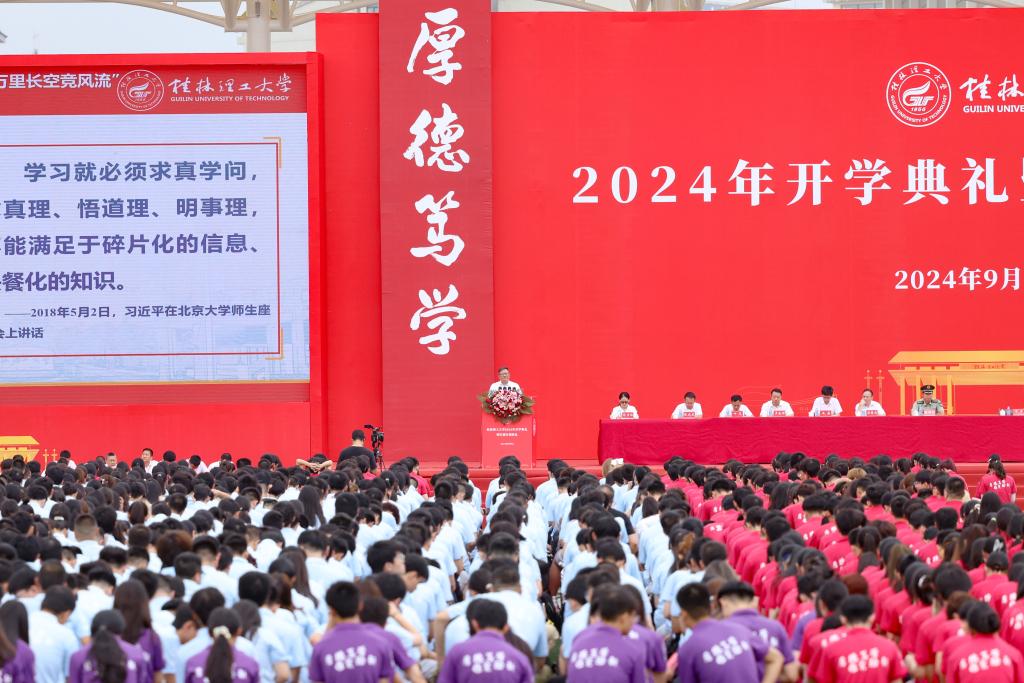 岁月如歌,青春如诗。邓军指出,学校的愿景是让每一个选择在beat365英国官方网站学习的青年学生都能在这里自由而全面地成长,都能在这里收获知识、理想、本领和希望。现在起,同学们将在桂工校园里正式开启大学时光,学校已经为学子的成长成才创造了优良的条件。他希望同学们争做壮志满怀、奔腾不息的时代“后浪”,不负“大有可为”的新时代,争做“奋发有为”的好青年,与党同心、与国同向、与时代同频共振,在推进强国建设、民族复兴伟业中展现青春作为、彰显青春风采、贡献青春力量,以桂工大学生应有的奋发向上书写为中国式现代化挺膺担当的青春篇章!