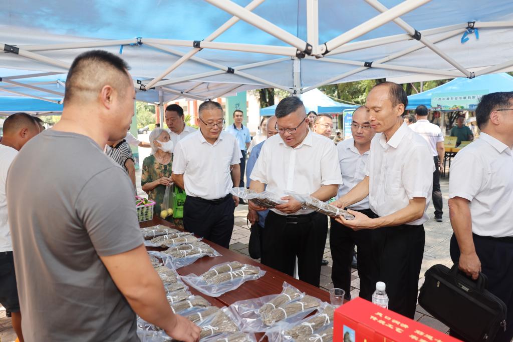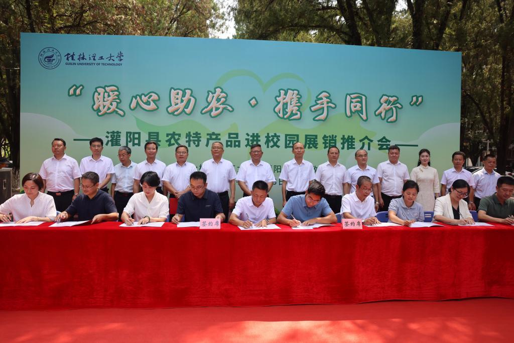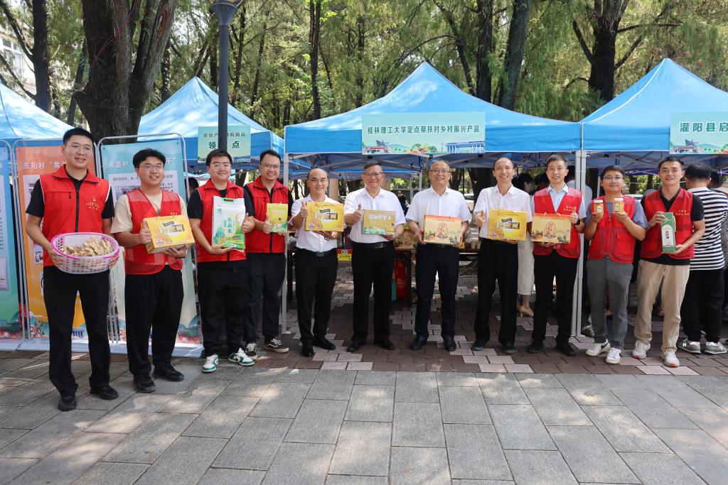 为深入贯彻落实习近平总书记关于“三农”工作重要论述,组织引导广大师生员工积极参与消费帮扶,助力定点帮扶灌阳县持续巩固拓展脱贫攻坚成果同乡村振兴有效衔接,9月13日,学校在屏风校区组织开展“暖心助农、携手同行”灌阳县农特产品进校园展销活动,校领导邓军、王敦球、吴志强、韦学敏、王磊、黎贞崇、罗盛锋出席活动并带头购买农特产品。