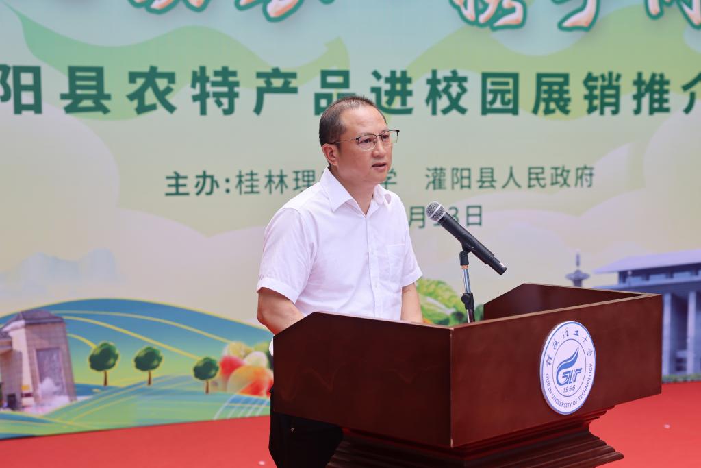 学校党委书记邓军在出席展销活动时指出,持续巩固拓展脱贫攻坚成果同乡村振兴有效衔接是党中央做出的重大决策部署,开展定点帮扶、助力乡村振兴,是学校服务国家战略、助力区域发展的光荣使命。多年来,学校坚持把接续做好乡村振兴工作作为践行教育社会服务功能,深化立德树人大课堂的有效途径,不断发挥教育、科技、人才优势,深入实施“四大帮扶”行动和“五个一百”帮扶计划,为推进乡村振兴做出了积极贡献。本次展销活动是学校充分利用自身优势资源,为灌阳县农产品拓宽销售渠道,帮助低收入群众增收的务实举措。希望学校各单位、各部门深入开展有组织的宣传和认购活动,以实际行动支持消费帮扶工作,为助力群众增收致富、推进乡村全面振兴贡献自身力量。