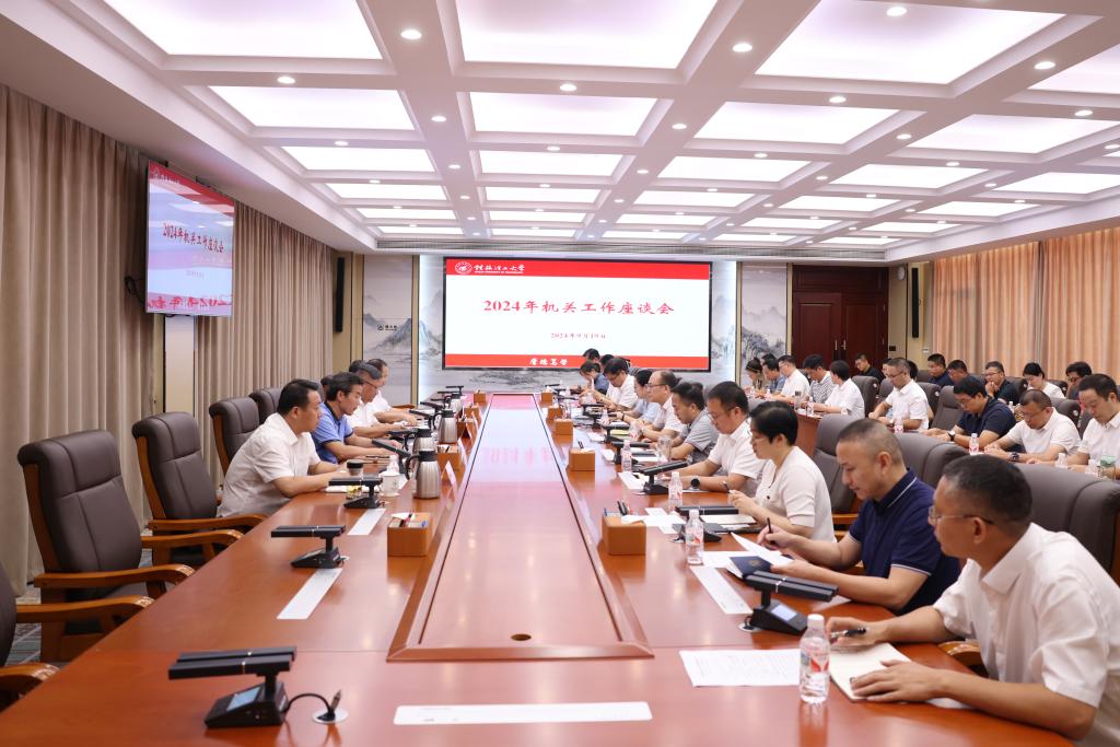 9月19日下午,beat365在雁山校区第三会议室召开2024年机关工作座谈会,深入学习贯彻党的二十届三中全会精神,学习贯彻习近平总书记就中央和国家机关学习贯彻党的二十届三中全会精神、推动机关党建高质量发展作出的重要指示,总结工作、交流经验、分析形势、研究问题,进一步明确机关工作新要求,推动机关党建与业务深度融合,以机关工作新作为推动学校发展再展新气象。学校党委书记邓军出席会议并讲话。自治区纪委监委驻校纪检监察组组长,学校党委常委、纪委书记韦学敏主持会议。在家校领导周国清、黎贞崇、罗盛锋,学校机关党委委员、纪委委员、部分机关部门负责人参加会议。