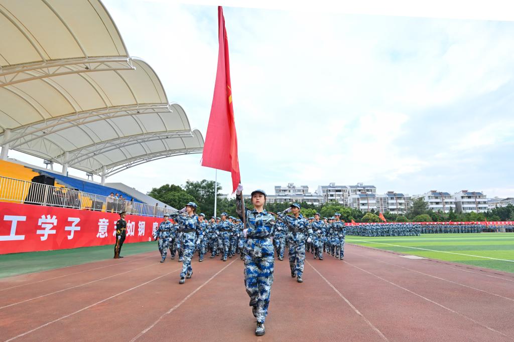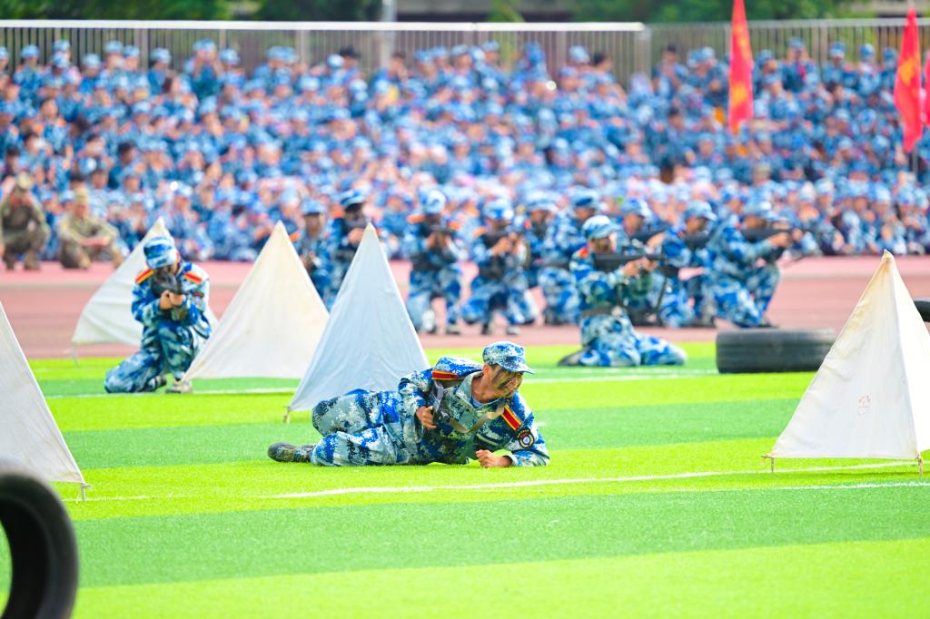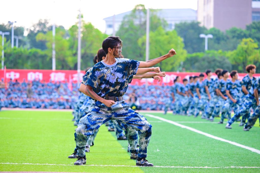 邓军指出,高校国防教育是全民国防教育的重要组成部分,是高校实现立德树人根本任务、培养高素质后备兵员的重要途径,是增强大学生国防观念和国家安全意识的重要举措。今年的新生军训,学校坚持实际与实战相结合,不断创新军训形式、丰富军训体验、提升军训实效。17天的军训生活,同学们在身心淬炼中激发了内在潜力、见证了自身成长,展现了当代大学生爱党爱国的深厚情感、奋发进取的精神状态、不怕困难的英雄气概和请党放心、强国有我的青春誓言。他向同学们提出三点期望:一是要厚植爱国情怀,砥砺强国之志。把爱国情、强国志融入努力学习、奋发成才的实际行动中,在为强国建设、民族复兴而努力学习的实践行动中。二是要磨砺坚毅品格,锤炼过硬本领。自觉把“读万卷书”与“行万里路”结合起来,以“千磨万击还坚劲”的坚毅品格,学习知识、锤炼本领、增长才干,努力在青年阶段把奉献祖国服务人民的基石打深、打牢。三是要胸怀伟大梦想,书写青春华章。把个人梦与中国梦紧密联系在一起,把实现党和国家确立的发展目标变成自己刻苦学习、积极实践、努力工作的自觉行动,用火热的青春激活蕴藏于梦想之中的创造伟力,书写无愧于时代的壮丽篇章。