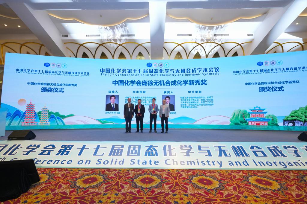 冯守华院士、庞徐基金会孟宪平理事长共同为获得中国化学会庞徐无机合成化学新秀奖的学者颁奖